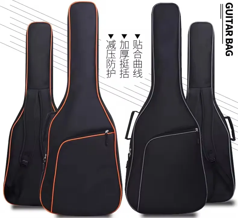 Mid-level 41″ acoustic guitar gig bag with 10mm padding, offering enhanced protection for daily transport, retail sales, and bulk distribution.