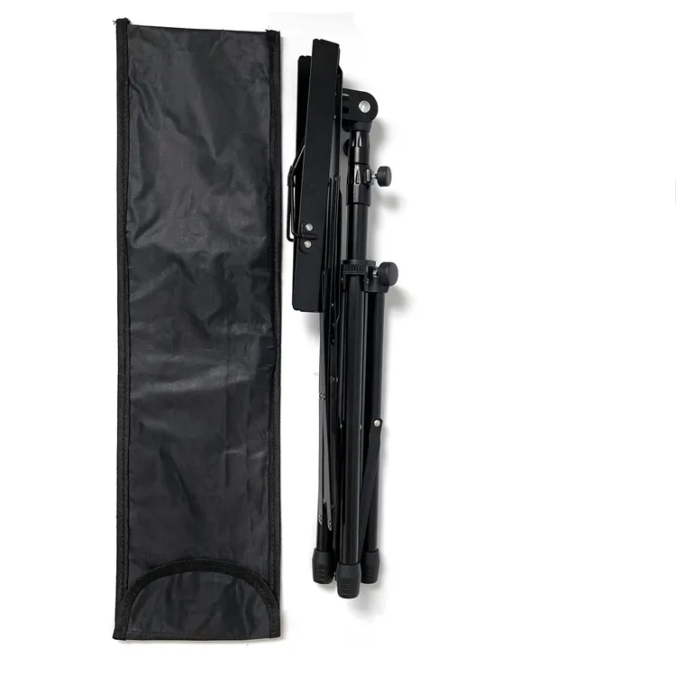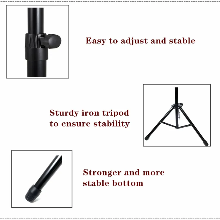 The height-adjustable center pole allows flexible positioning for both seated and standing musicians.