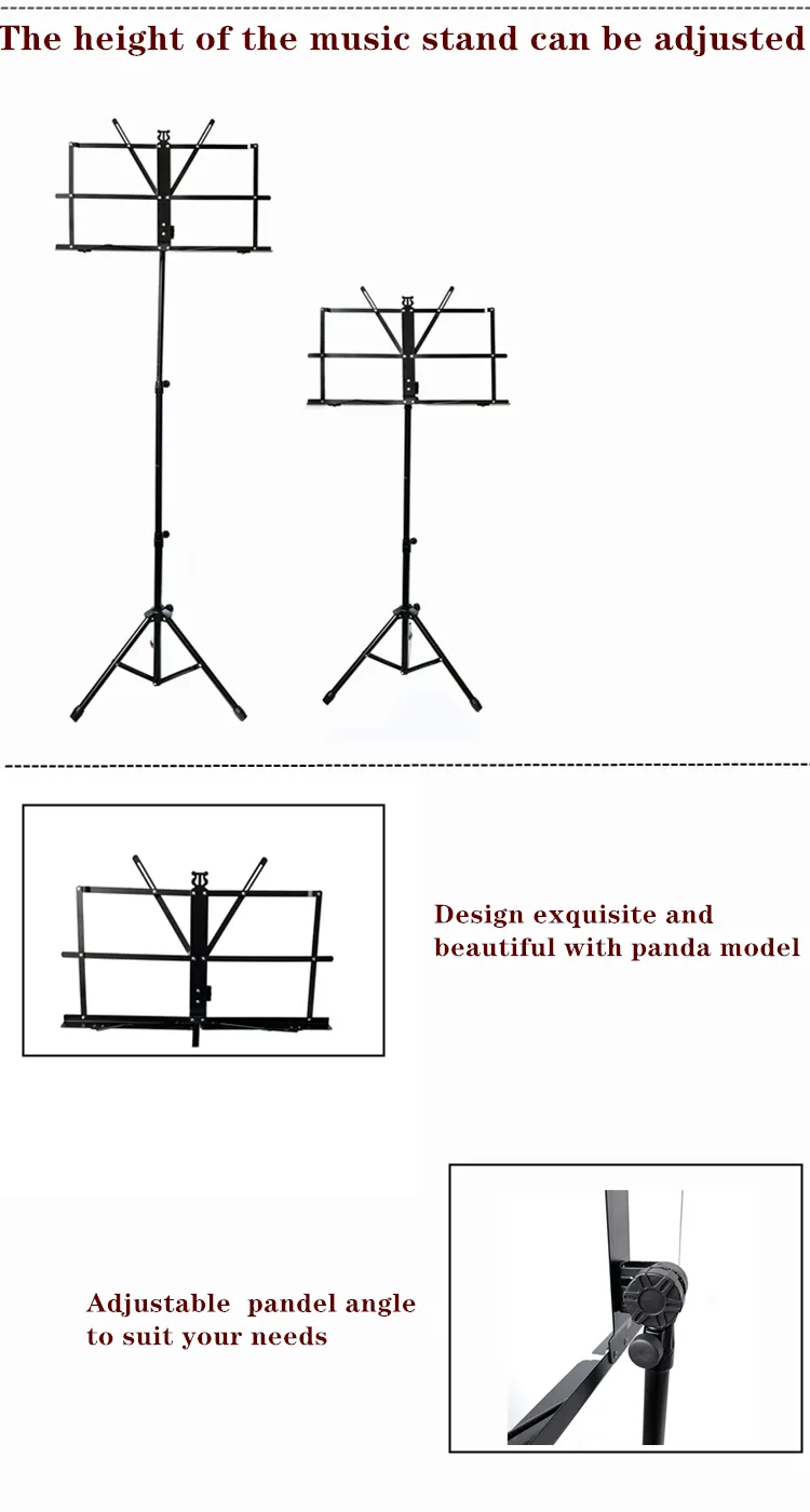 This adjustable music stand features a metal joint connection designed to improve durability and long-term stability during frequent use.