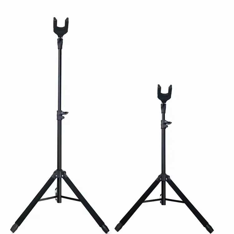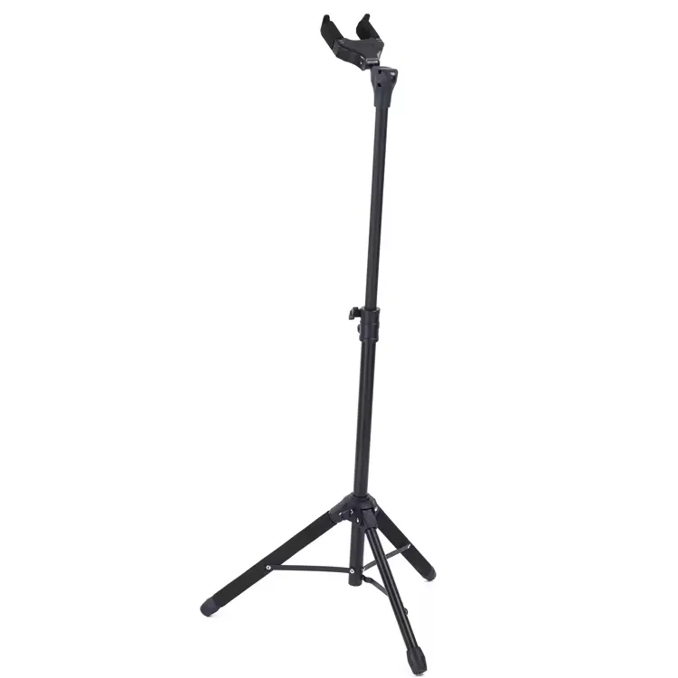The tripod base provides stable floor support, while padded contact points help protect the guitar finish from scratches and wear.