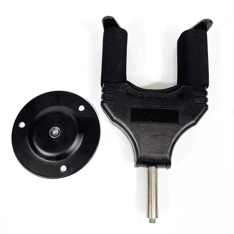 This auto-lock guitar wall hanger features a metal mounting base combined with an automatic gravity locking system, providing secure and reliable instrument storage for professional and commercial environments.