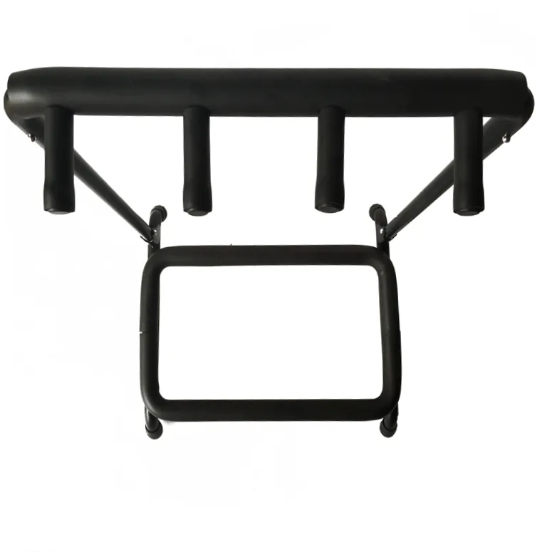 The top support bar features multiple padded holders to keep guitar necks separated, while the lower rectangular base provides stable body support during storage.