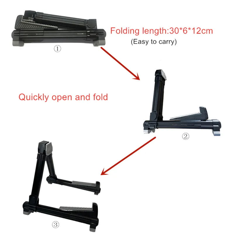 Its lightweight metal structure allows the stand to be folded flat, making it easy to carry, store, or include in guitar accessory kits.