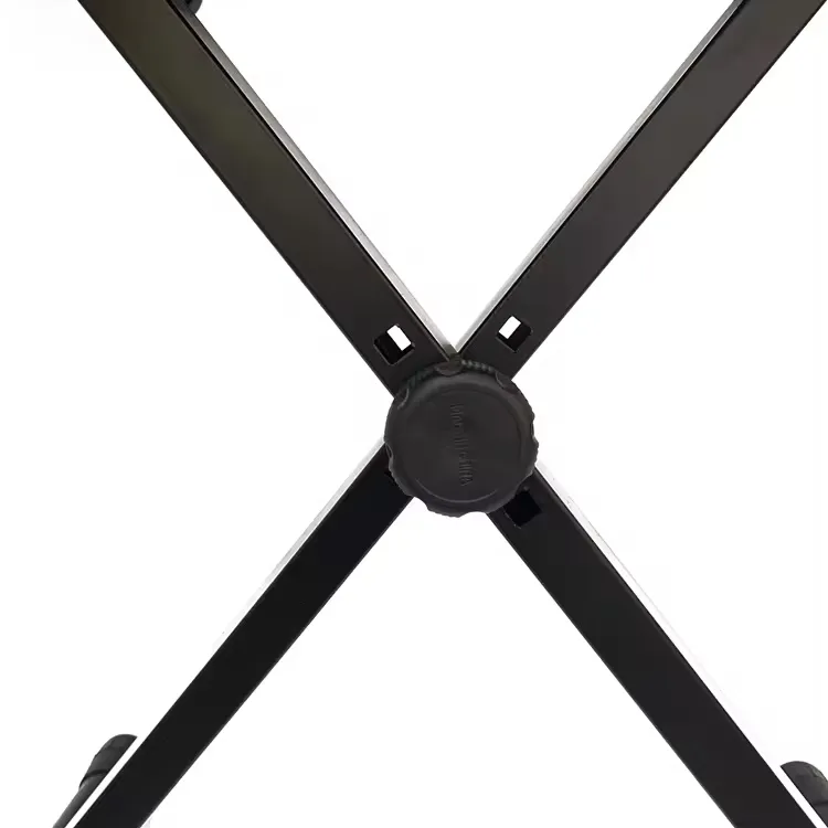The sturdy steel X-frame structure provides stable support, while the height-adjustment mechanism allows flexible positioning for different playing preferences.