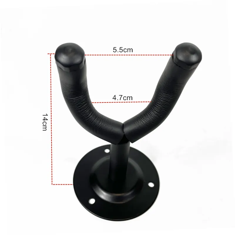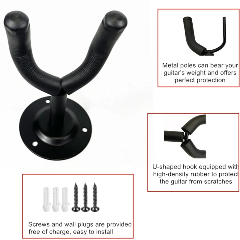 The hanger is constructed with a solid metal base plate for firm wall mounting, ensuring long-term stability. The cradle arms are covered with soft protective foam padding, helping to prevent scratches, pressure marks, or damage to the instrument’s neck and finish.